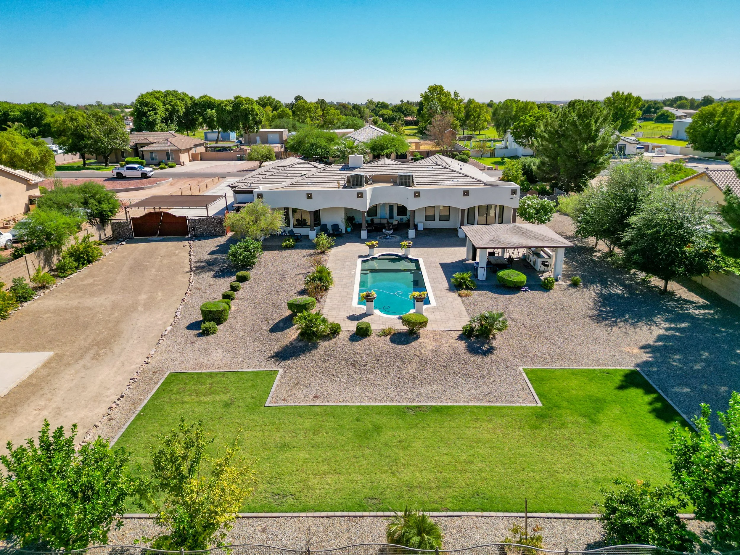 Drone photography gives buyers context they can’t get from ground-level photos—showing property lines, lot size, landscaping, neighborhood proximity, and nearby amenities. For large estates, homes with unique architecture, or properties that back to open desert or golf courses, aerials highlight the lifestyle that comes with the address.